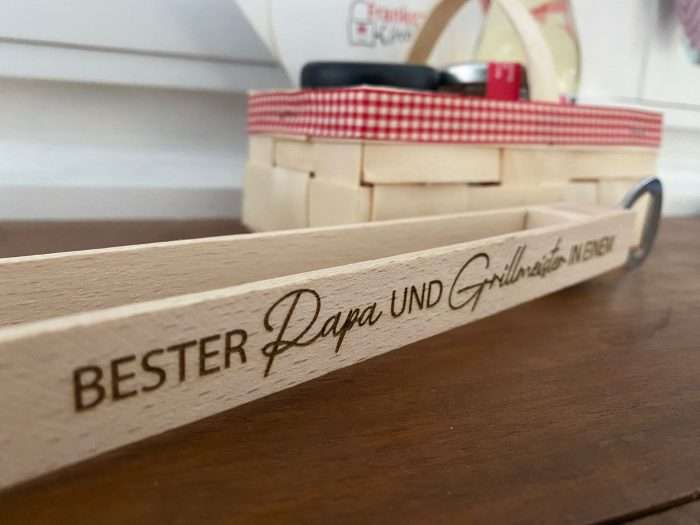 Unsere personalisierte Grillzange aus nachhaltigem Buchenholz ist ein tolles Geschenk für Grillbegeisterte und eine hervorragende Ergänzung für Ihre Grillausstattung. Perfekt für Grillpartys, Campingausflüge und gemütliche Abende im Freien.