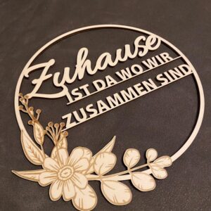 Eleganter Holzkranz: Verziert mit der herzlichen Aufschrift 'Zuhause ist wo...